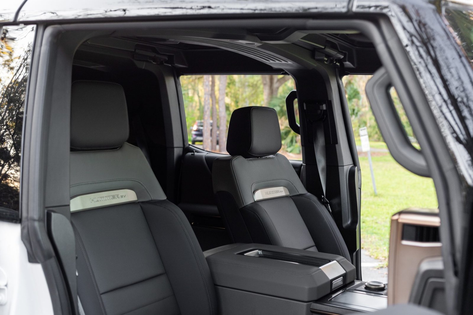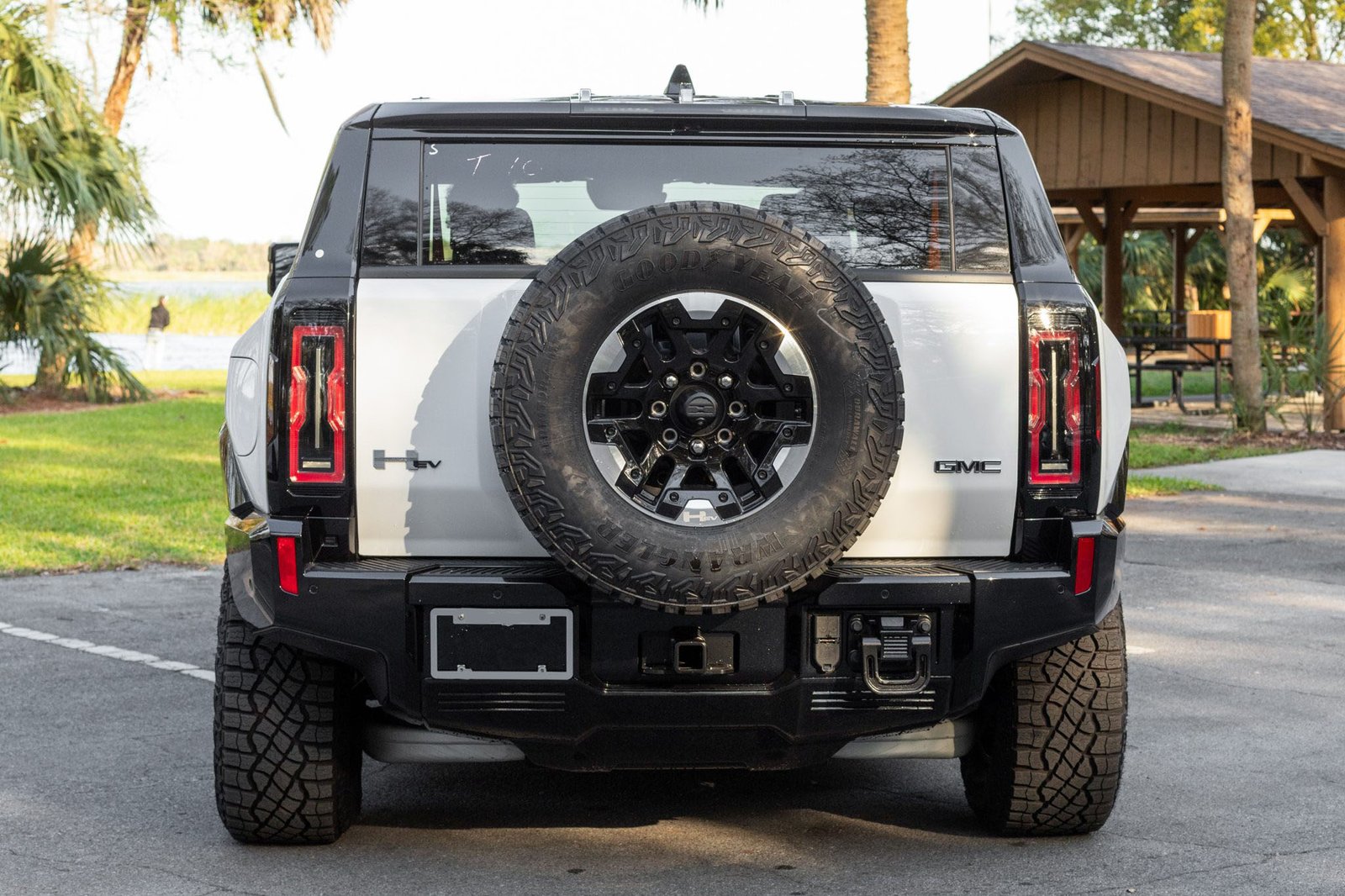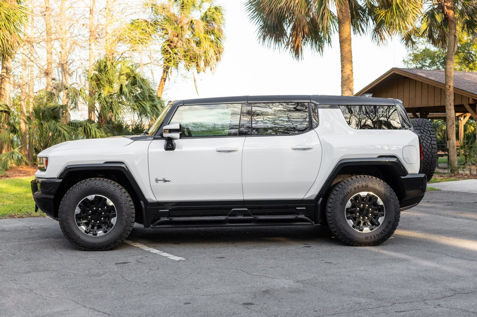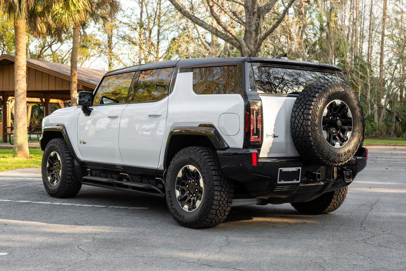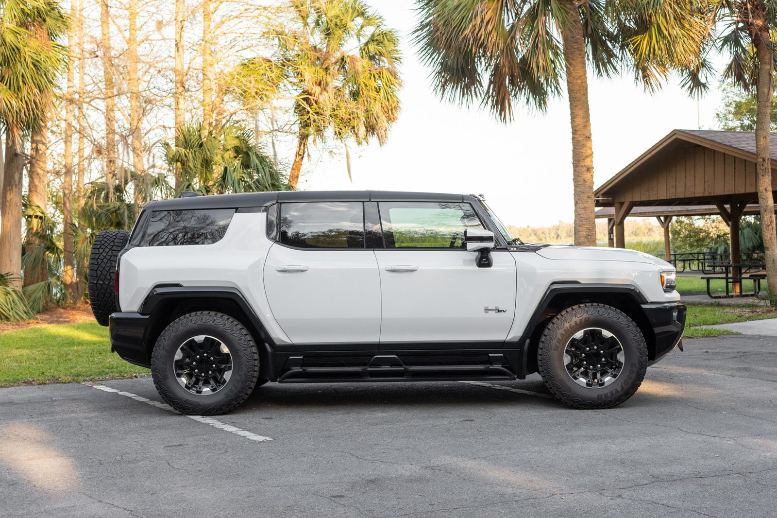 This 3X-spec Hummer EV SUV is equipped with the $10k Extreme Off-Road Package and powered by GM’s Ultium Drive e4WD system, delivering all-wheel traction via a single-motor front unit with an electronic locking differential and a dual-motor rear axle with virtual locking capability. Finished in Interstellar White over Lunar Shadow leather, the truck combines electric performance with next-gen tech and serious off-road capabilities — including CrabWalk four-wheel steering, adaptive air suspension, and Watts to Freedom launch control.