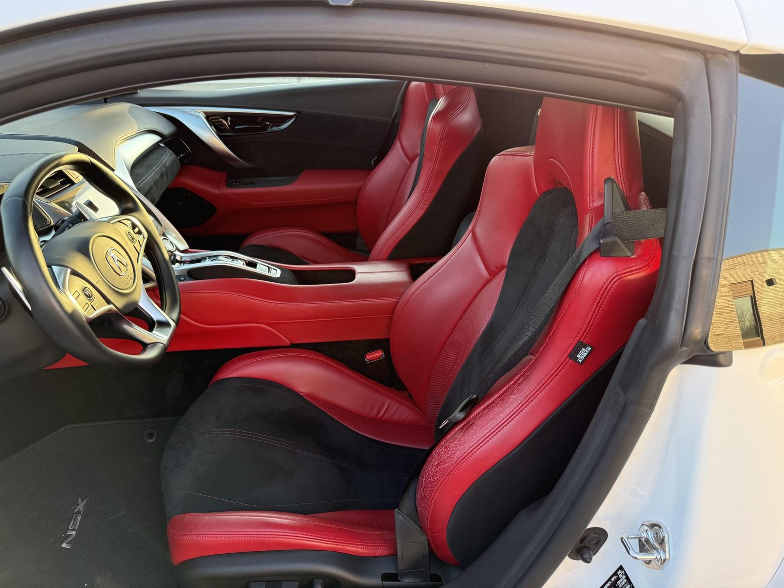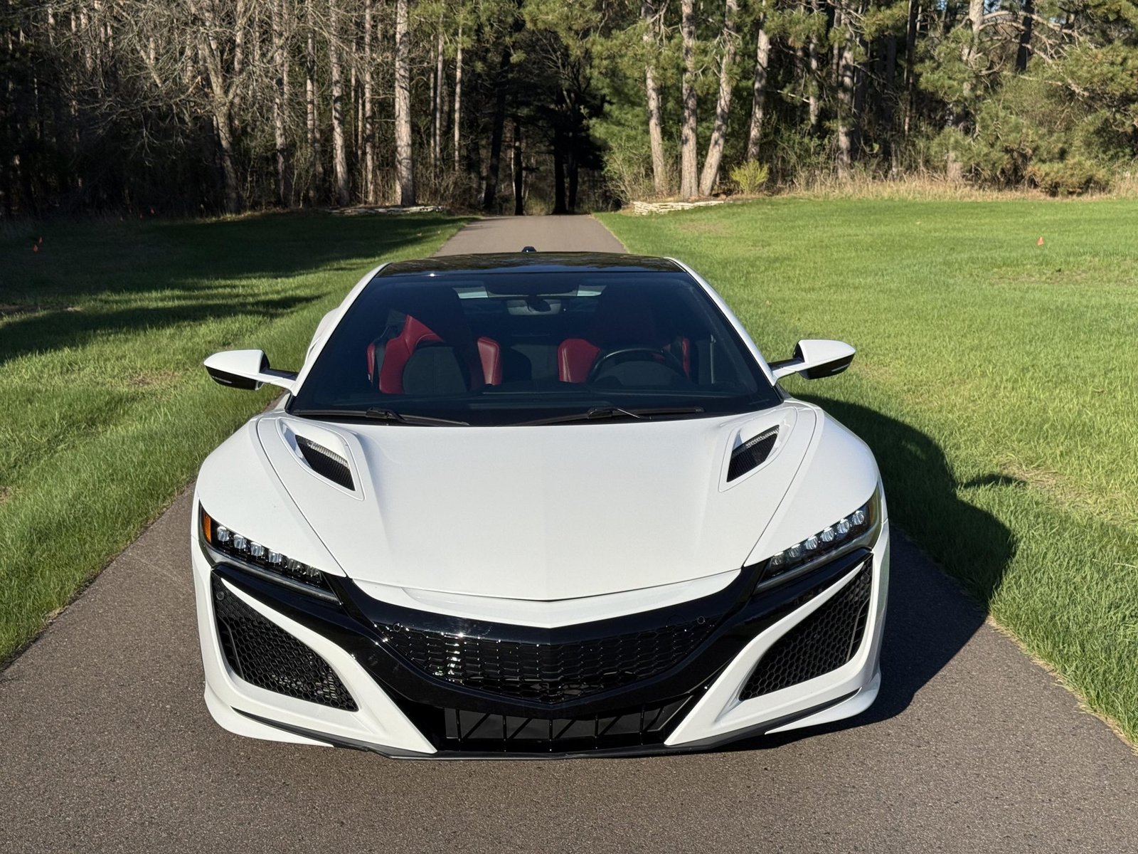 Finished in 130R White over red and black leather/Alcantara upholstery, the 2017 Acura NSX is a modern hybrid supercar that blends advanced electrification with traditional driving exhilaration. Its sculpted, aerodynamic body incorporates functional side air intakes, “Jewel Eye” LED headlights, pop-out door handles, and center-mounted exhaust outle...
