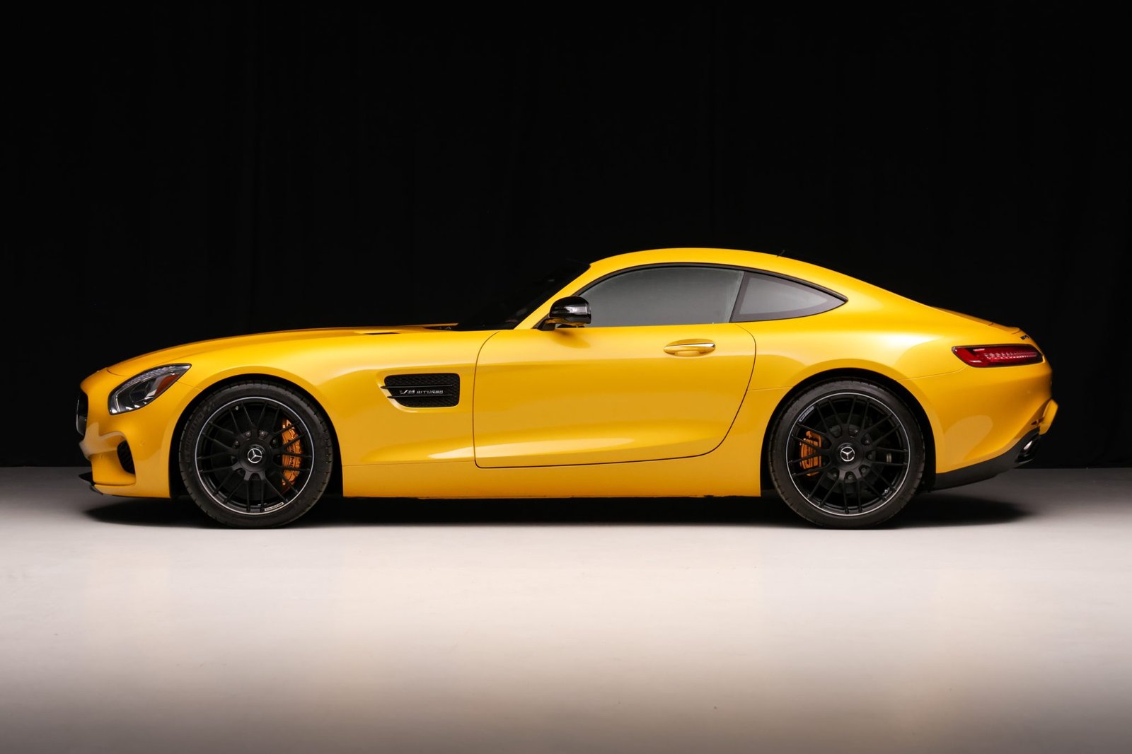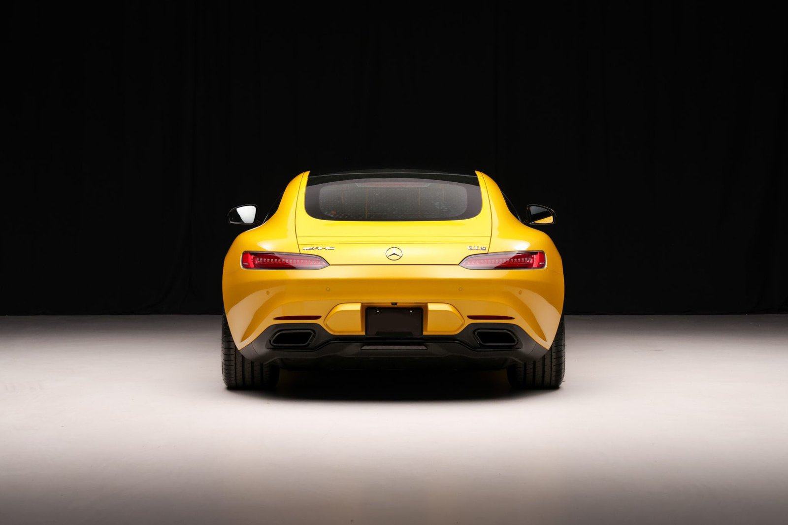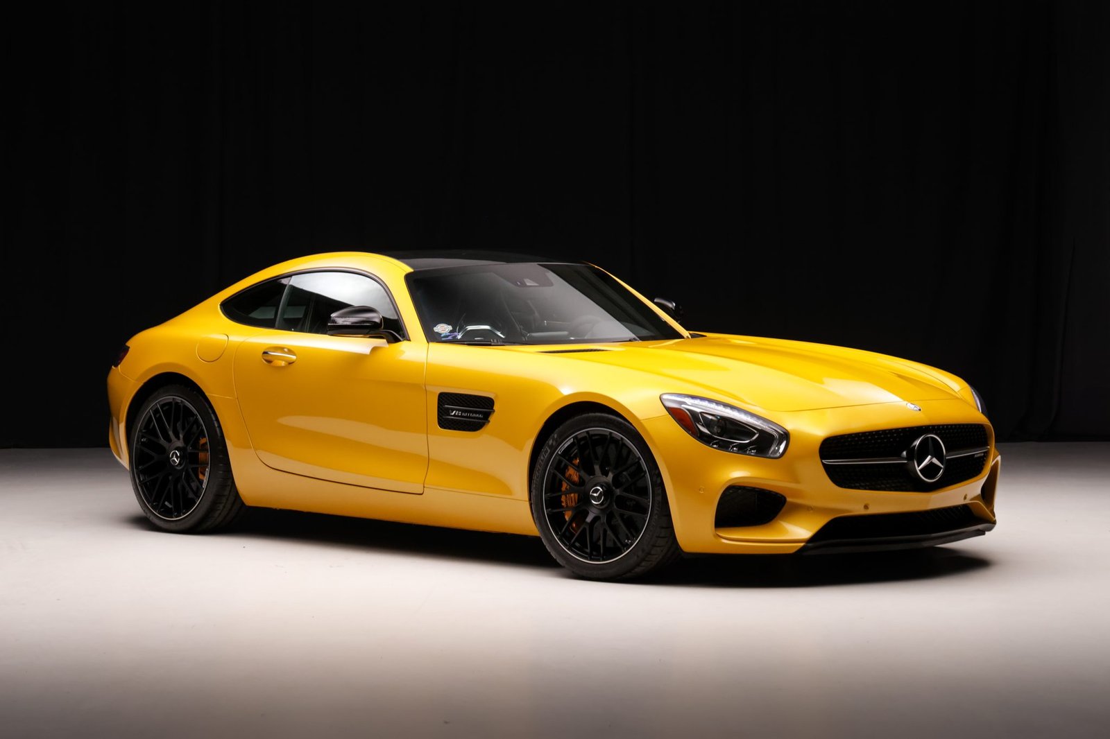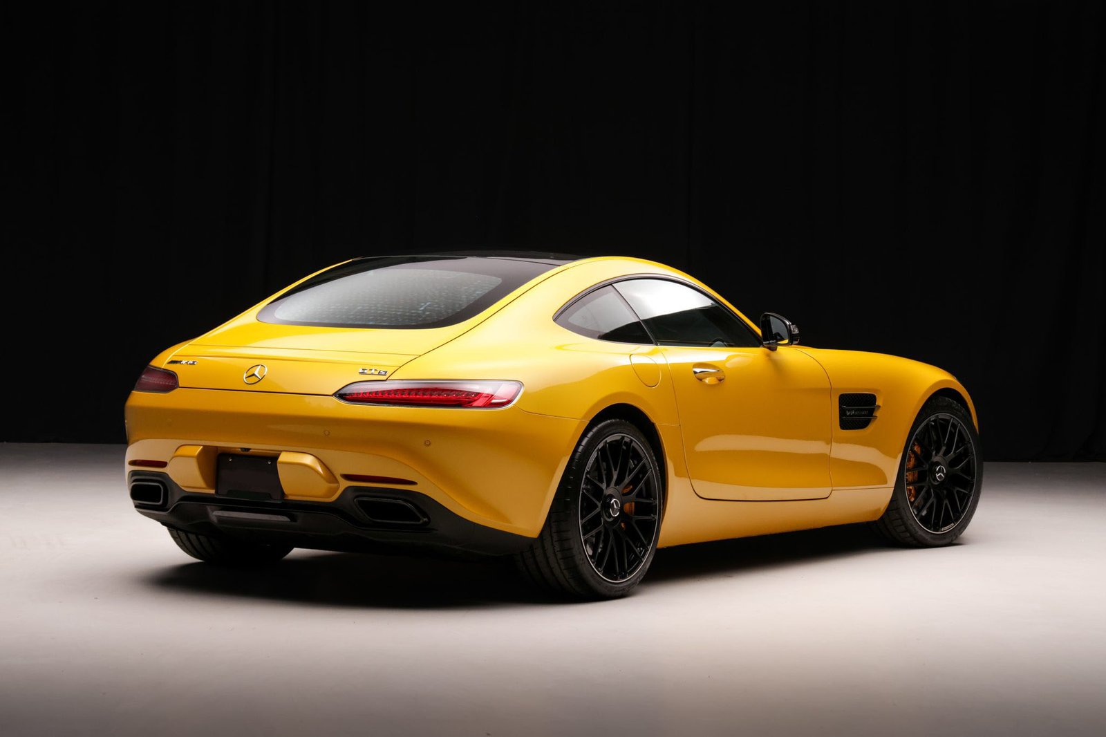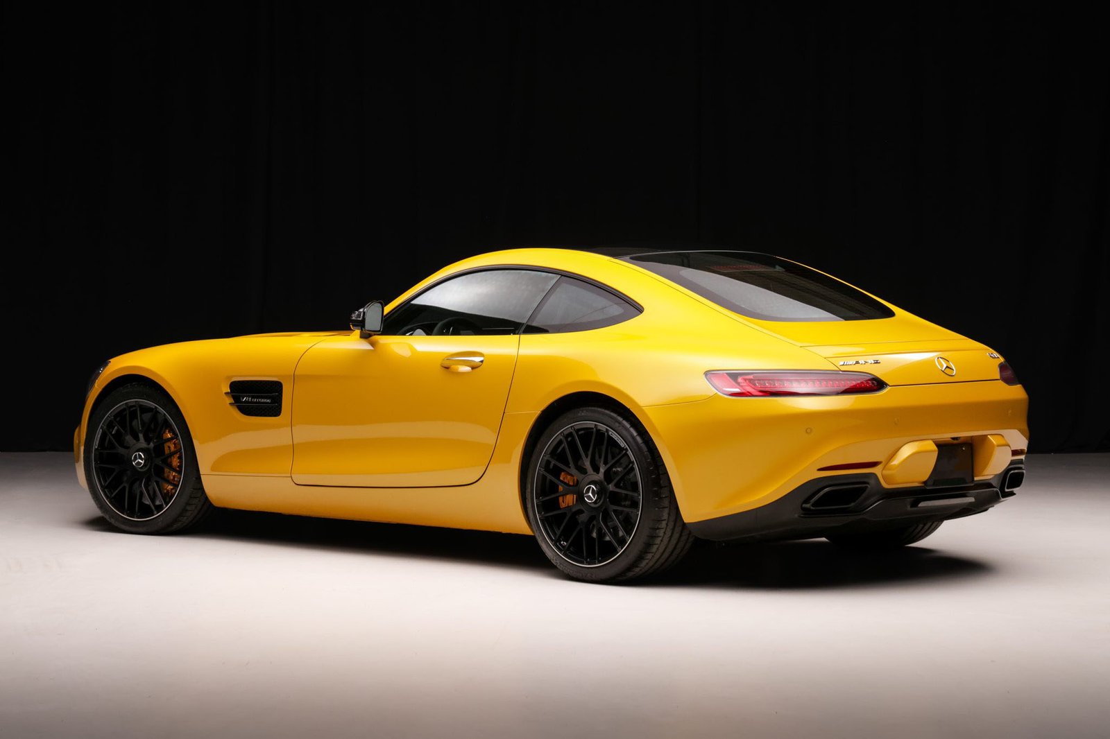 This 2016 Mercedes-AMG GT S is finished in AMG Solarbeam Yellow Metallic over Black Exclusive Nappa leather and Dinamica with Yellow stitching. It was ordered with the AMG Dynamic Plus, AMG Night Styling, Exclusive Interior, and Lane Tracking packages as well as ceramic-composite brakes, Burmester audio, a panoramic roof, and 19″ and 20″ forged AMG...