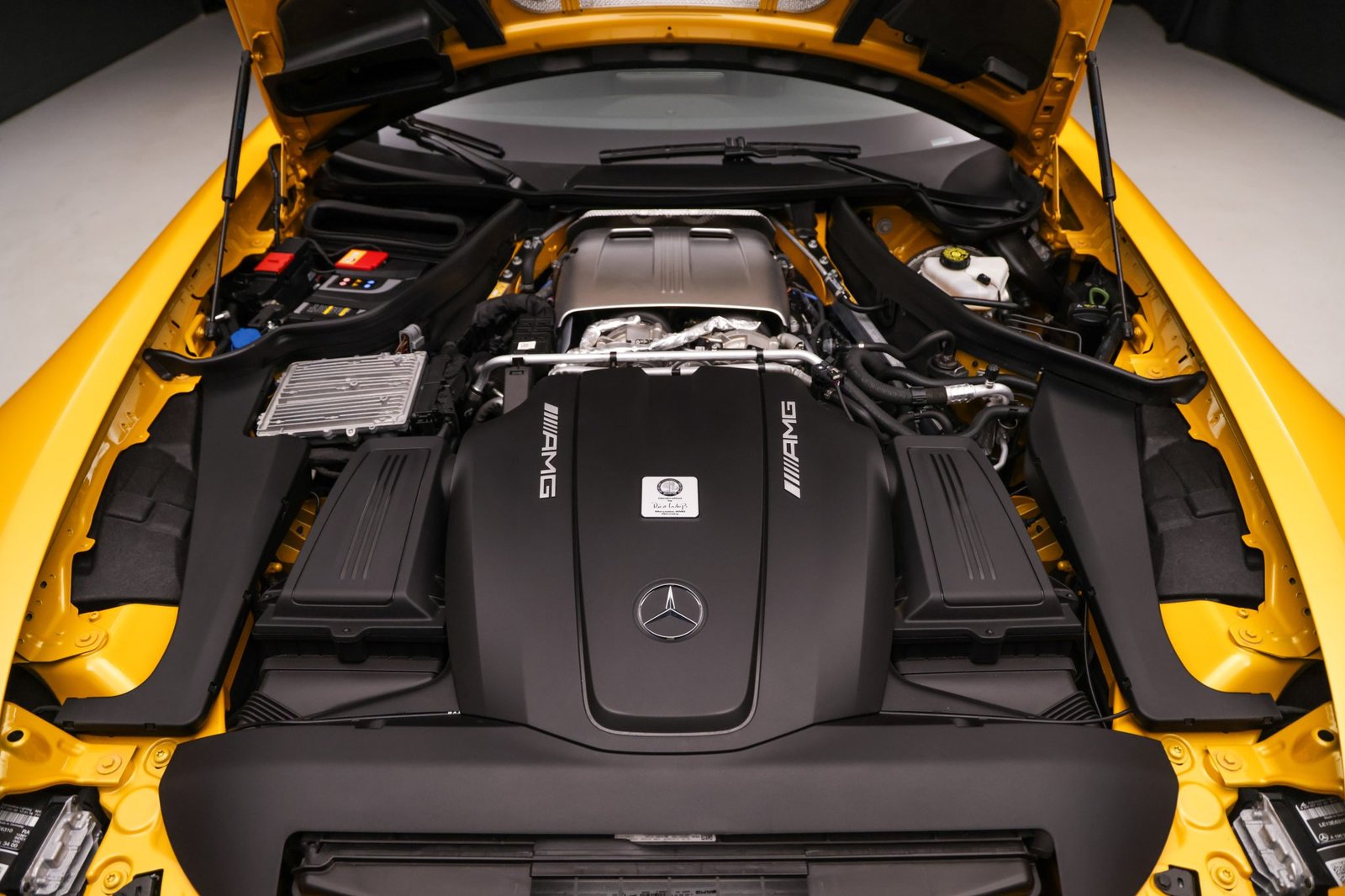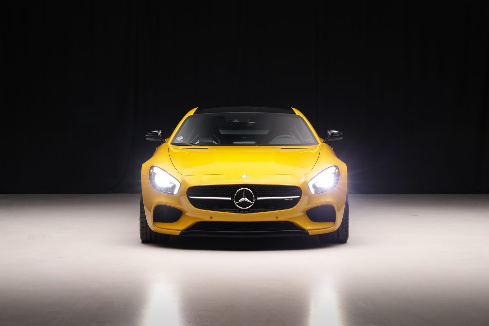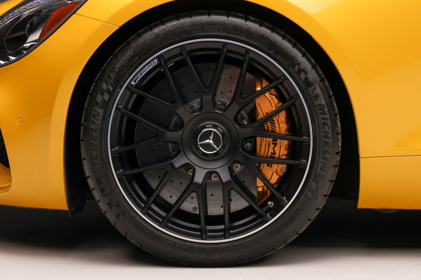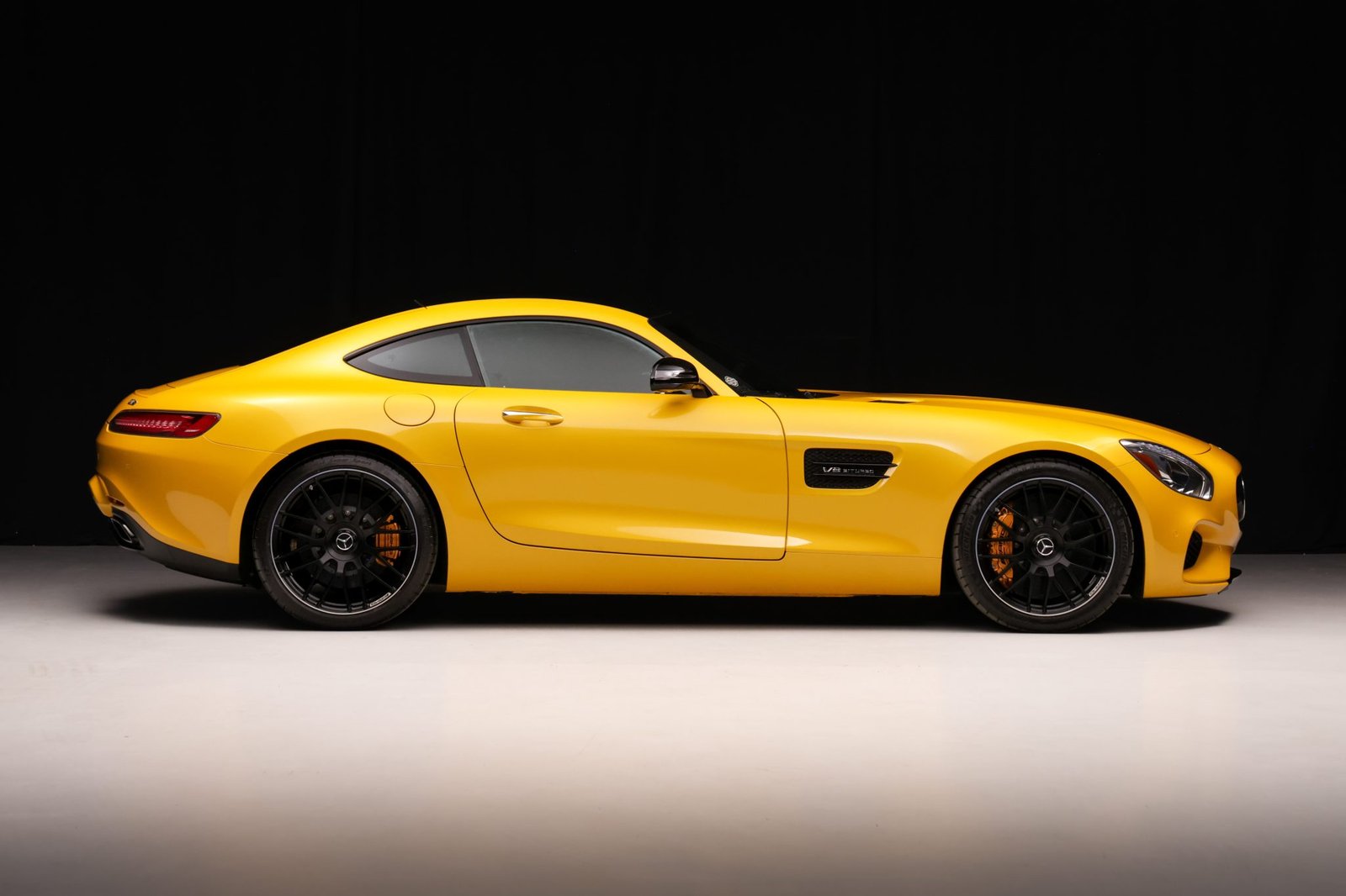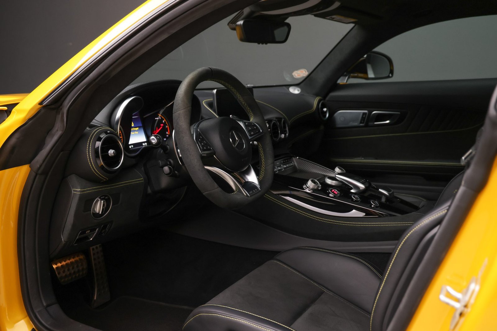 This 2016 Mercedes-AMG GT S is finished in AMG Solarbeam Yellow Metallic over Black Exclusive Nappa leather and Dinamica with Yellow stitching. It was ordered with the AMG Dynamic Plus, AMG Night Styling, Exclusive Interior, and Lane Tracking packages as well as ceramic-composite brakes, Burmester audio, a panoramic roof, and 19″ and 20″ forged AMG...