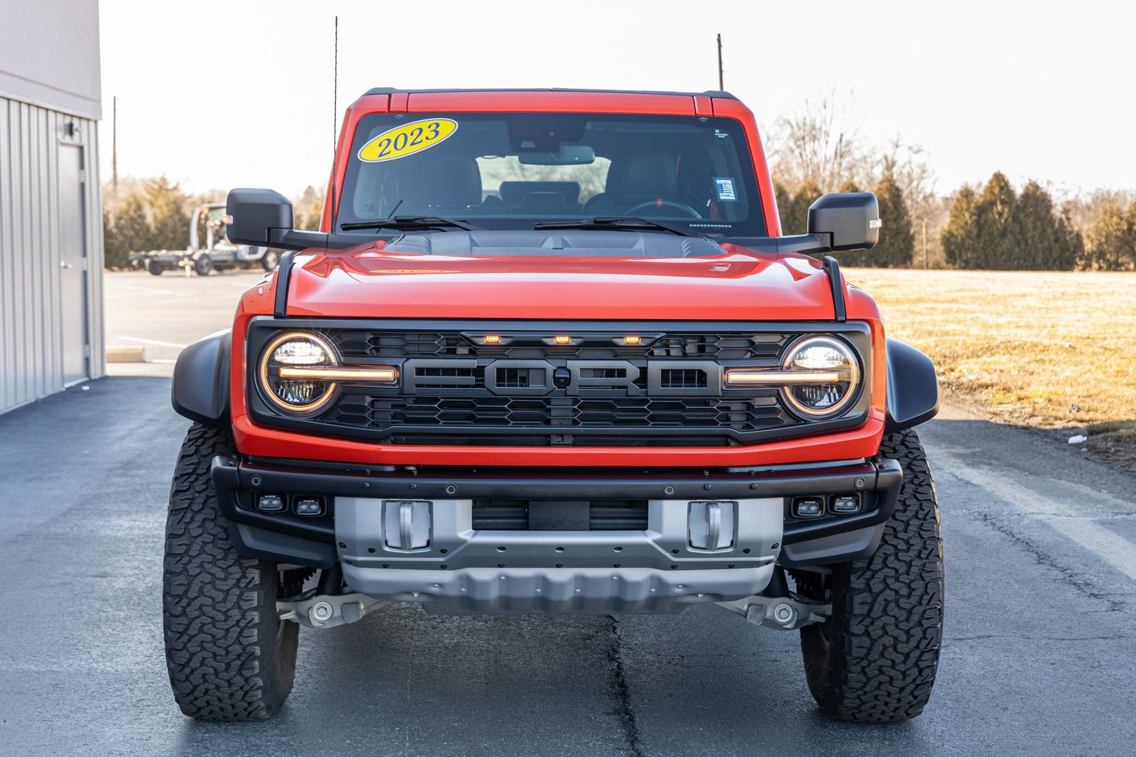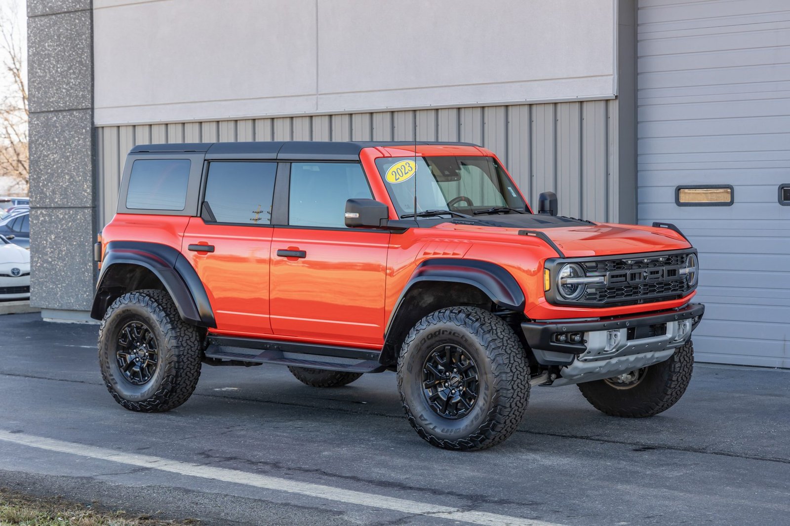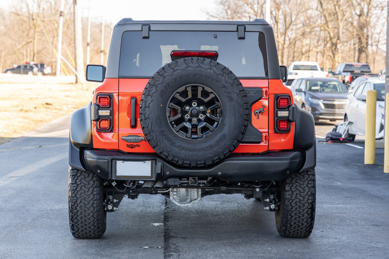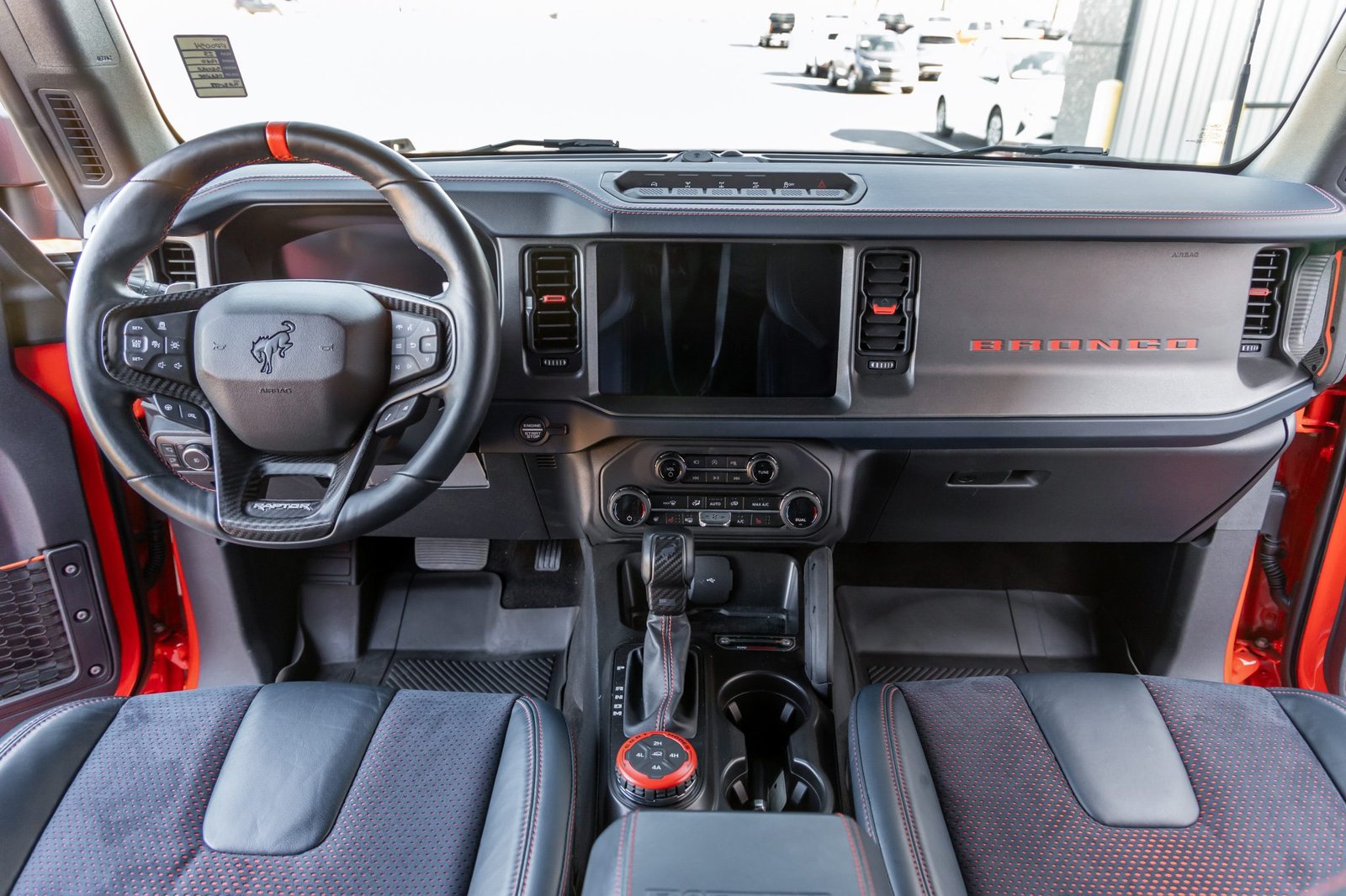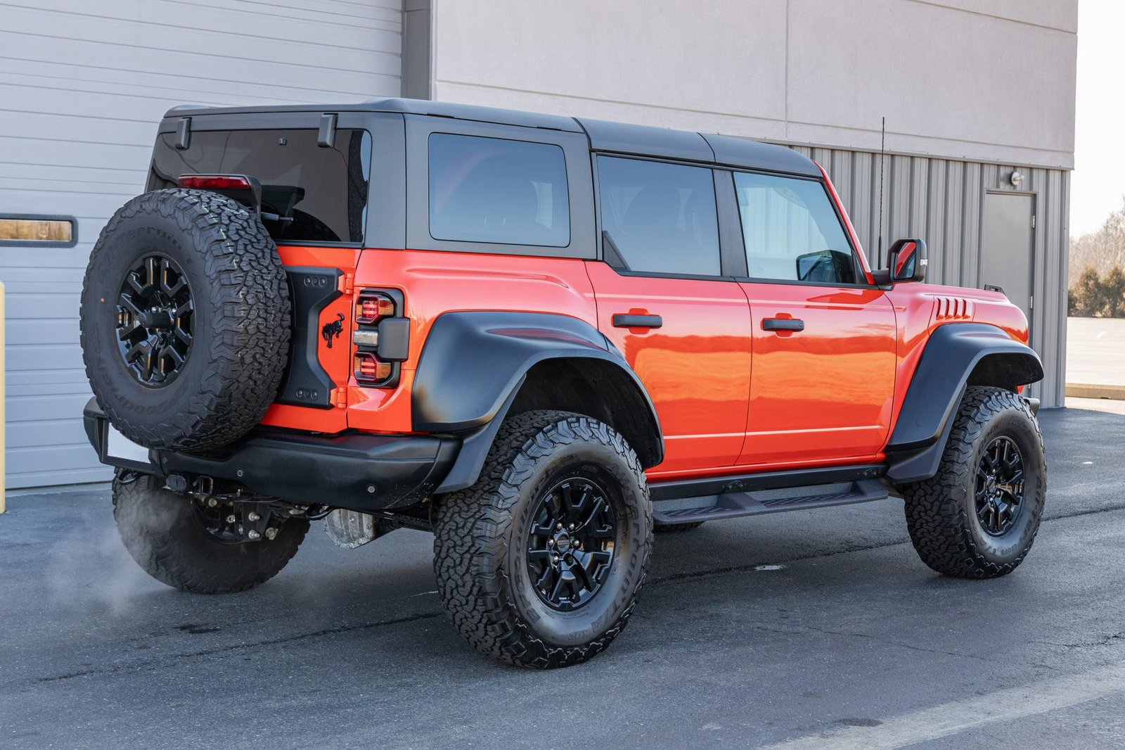 This Ford Bronco Raptor pairs high-performance off-road engineering with aggressive design and premium features. Powered by a 3.0L twin-turbo EcoBoost V6 mated to a 10-speed automatic transmission and equipped with locking front and rear differentials, it’s built to conquer any terrain. Finished in Code Orange with a Carbonized Gray hardtop, it features the Lux and Interior Carbon-Fiber packages, plus SYNC 4, G.O.A.T. Modes, and Raptor-exclusive chassis tuning.