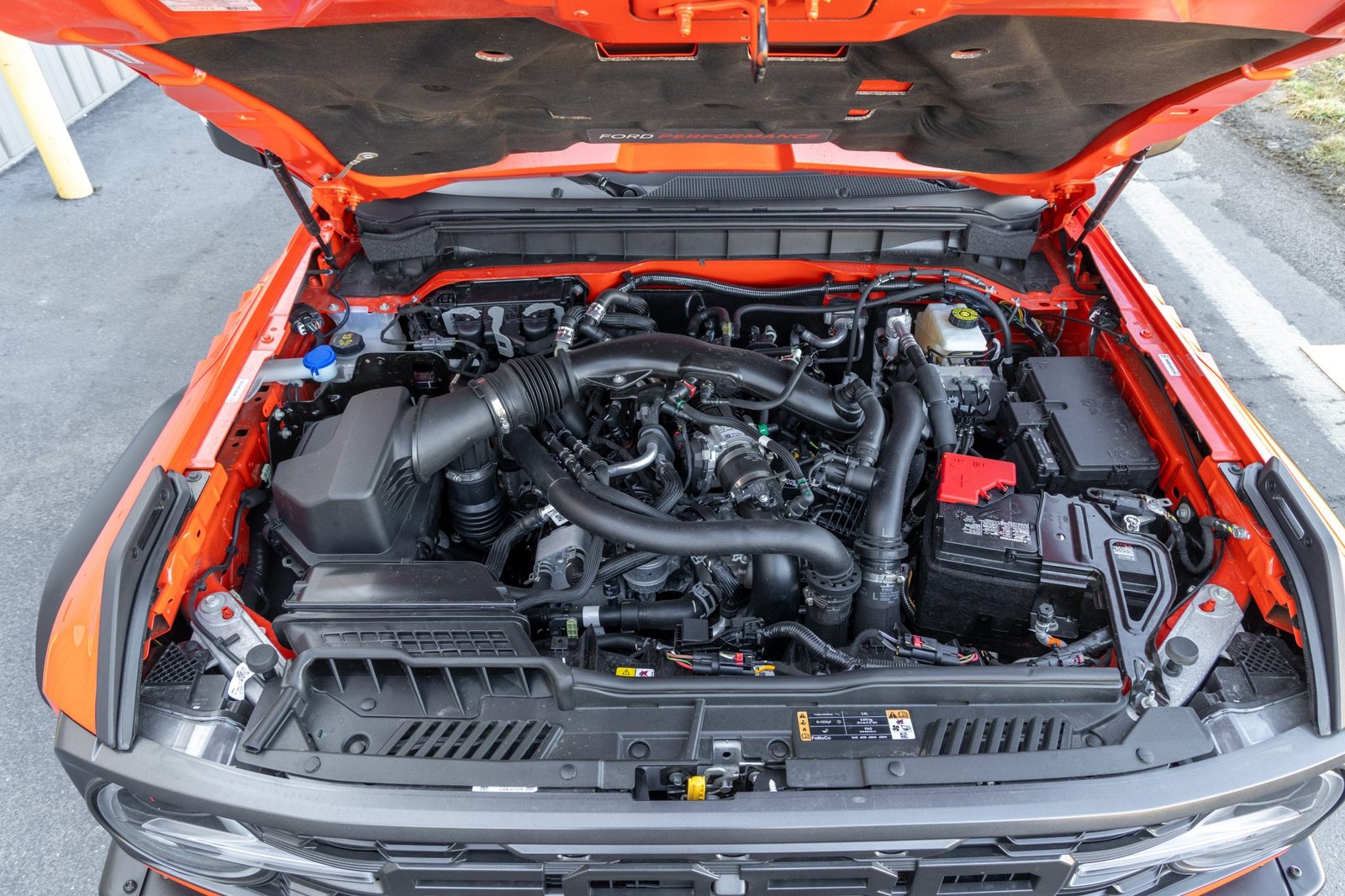 Code Orange paint with Raptor-specific wheel flares, hood vents & badging