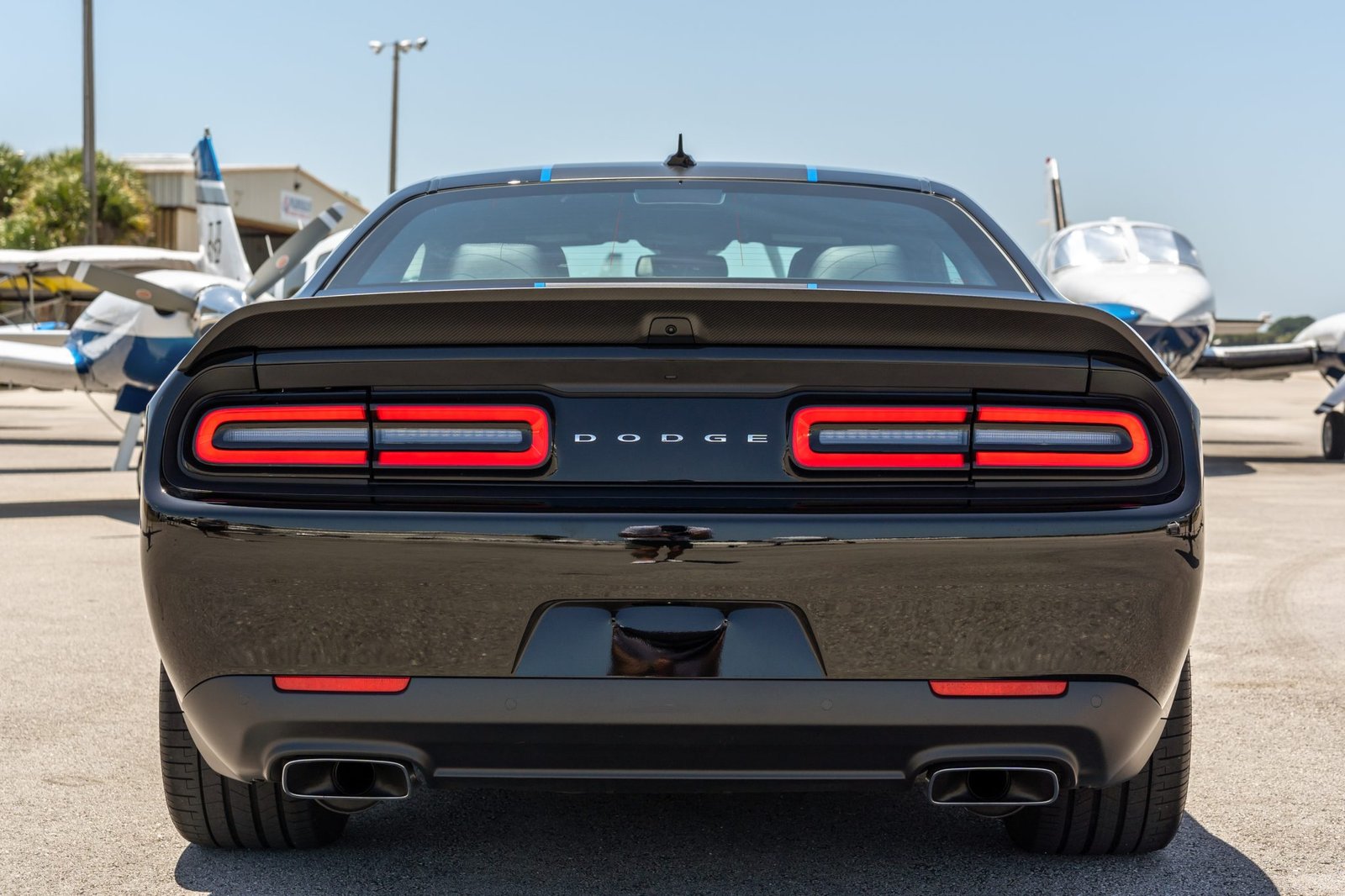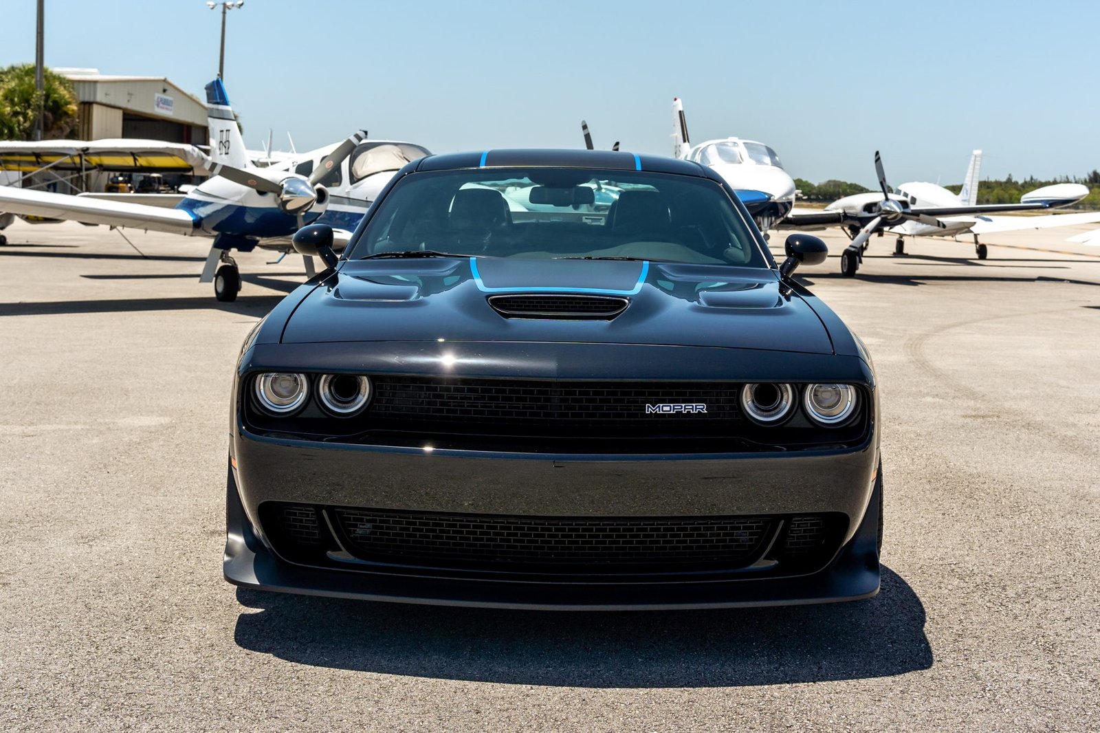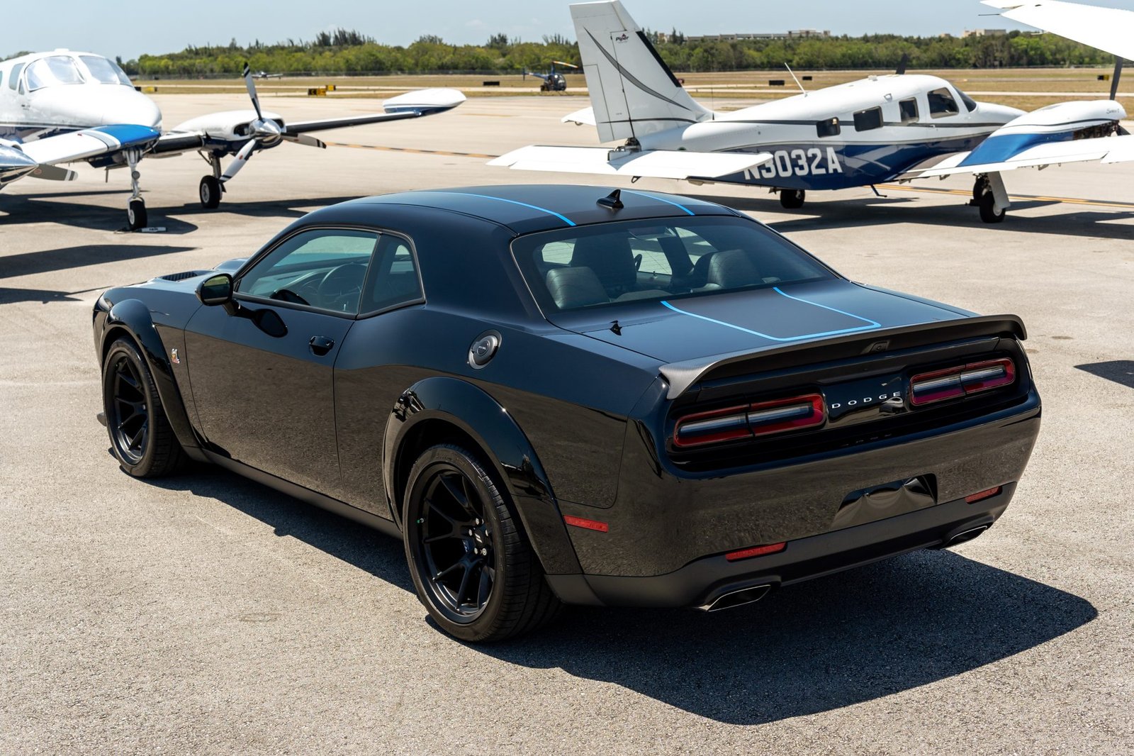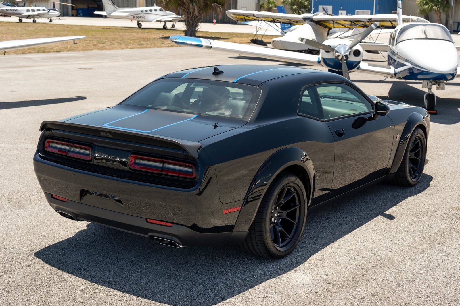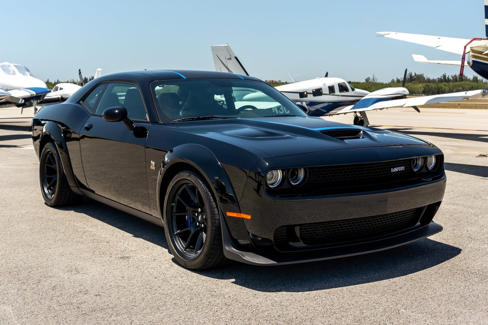 Pitch Black (PX8) w/ matte Mopar graphics & Blue tracer stripes