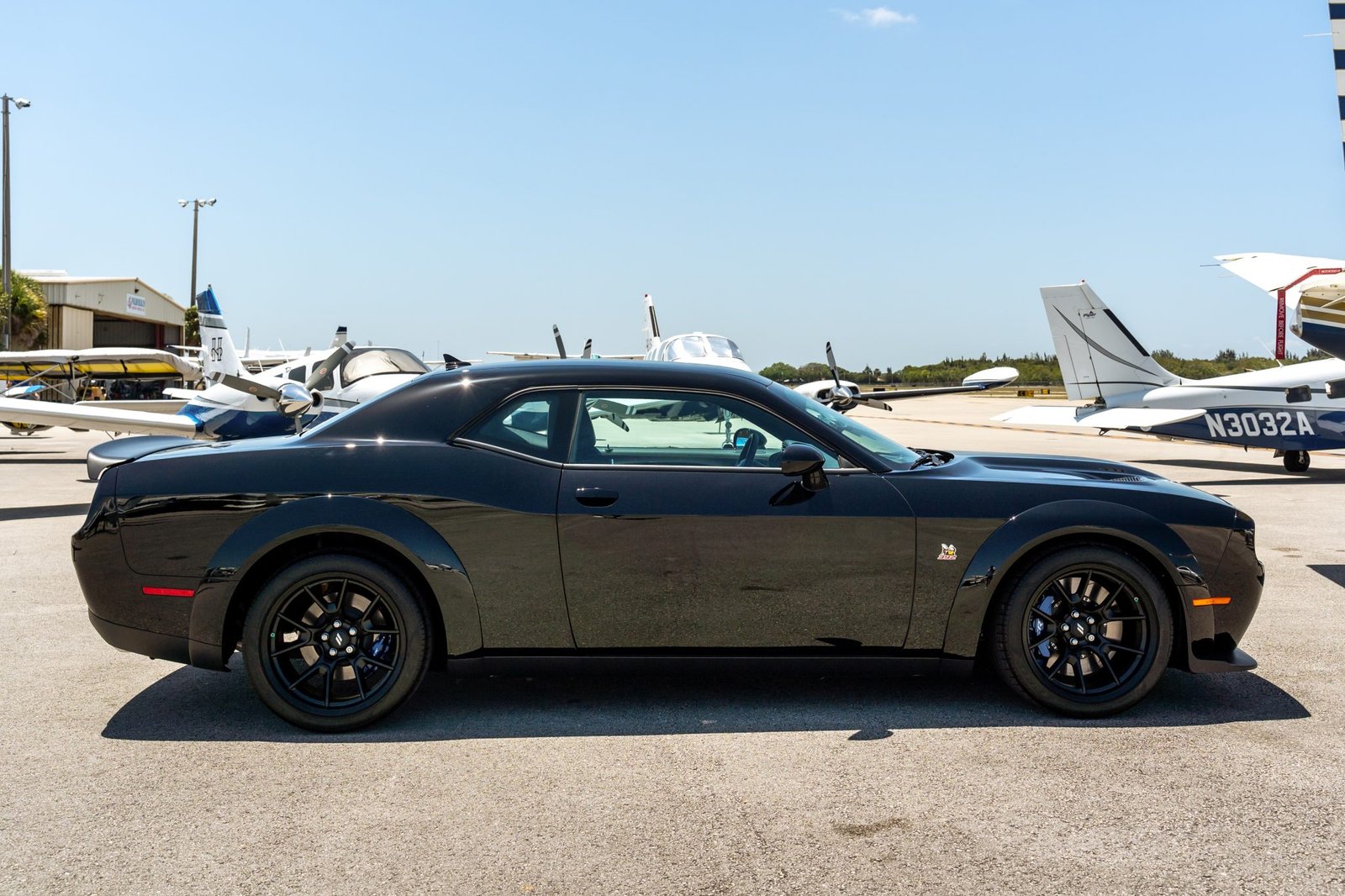This Mopar ’23 Special Edition Challenger is based on the R/T Scat Pack Widebody and features exclusive styling cues and performance enhancements. Finished in Pitch Black with matte black graphics and Mopar Blue tracer stripes, it’s powered by a 6.4L 392 HEMI V8 paired with a Tremec 6-speed manual transmission. Factory performance equipment includes Line Lock, Launch Assist, and a Competition Suspension with adaptive damping. The Mopar package also adds unique aero and interior details, making it a rare final-year tribute to the modern Challenger era.