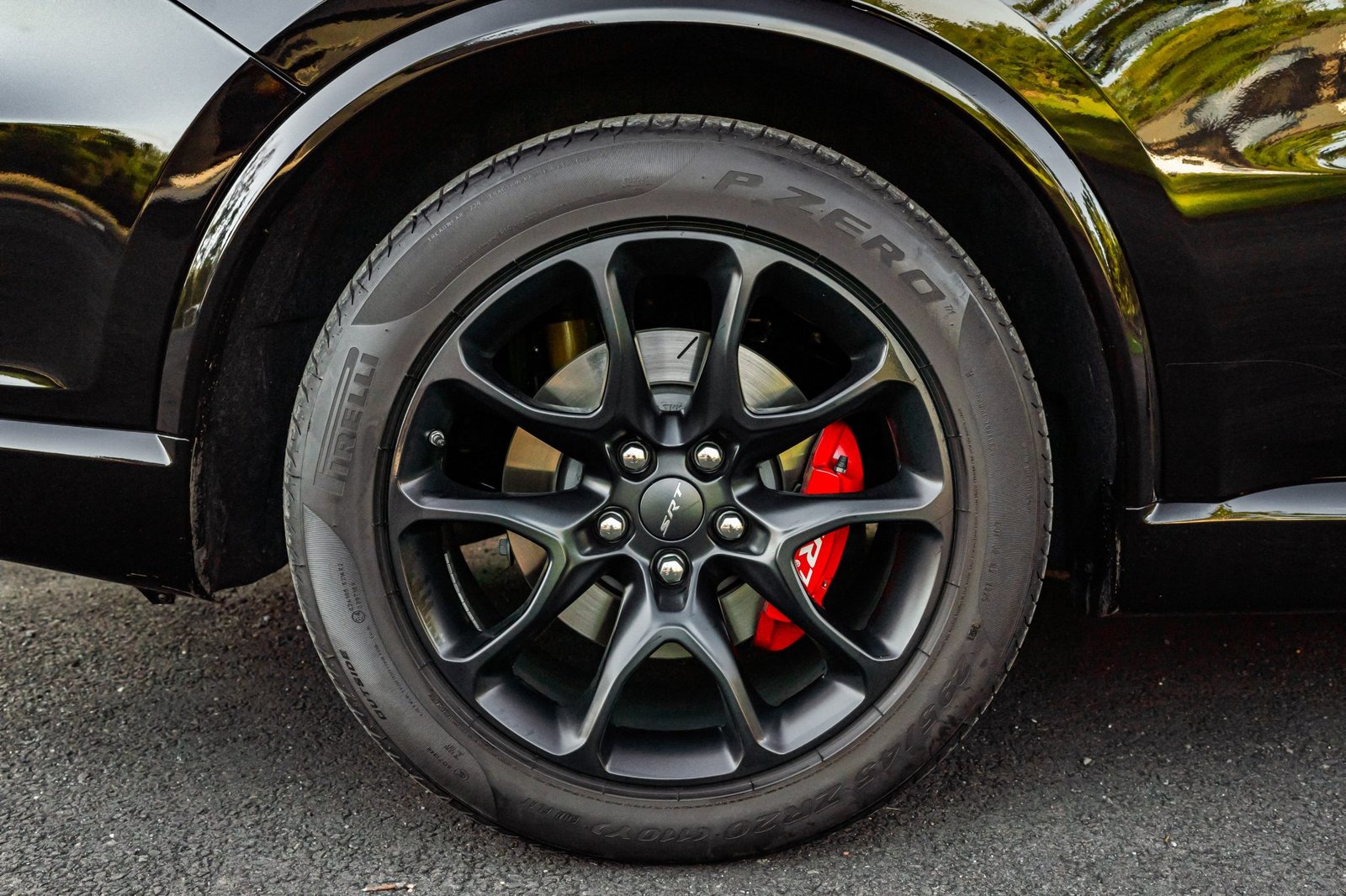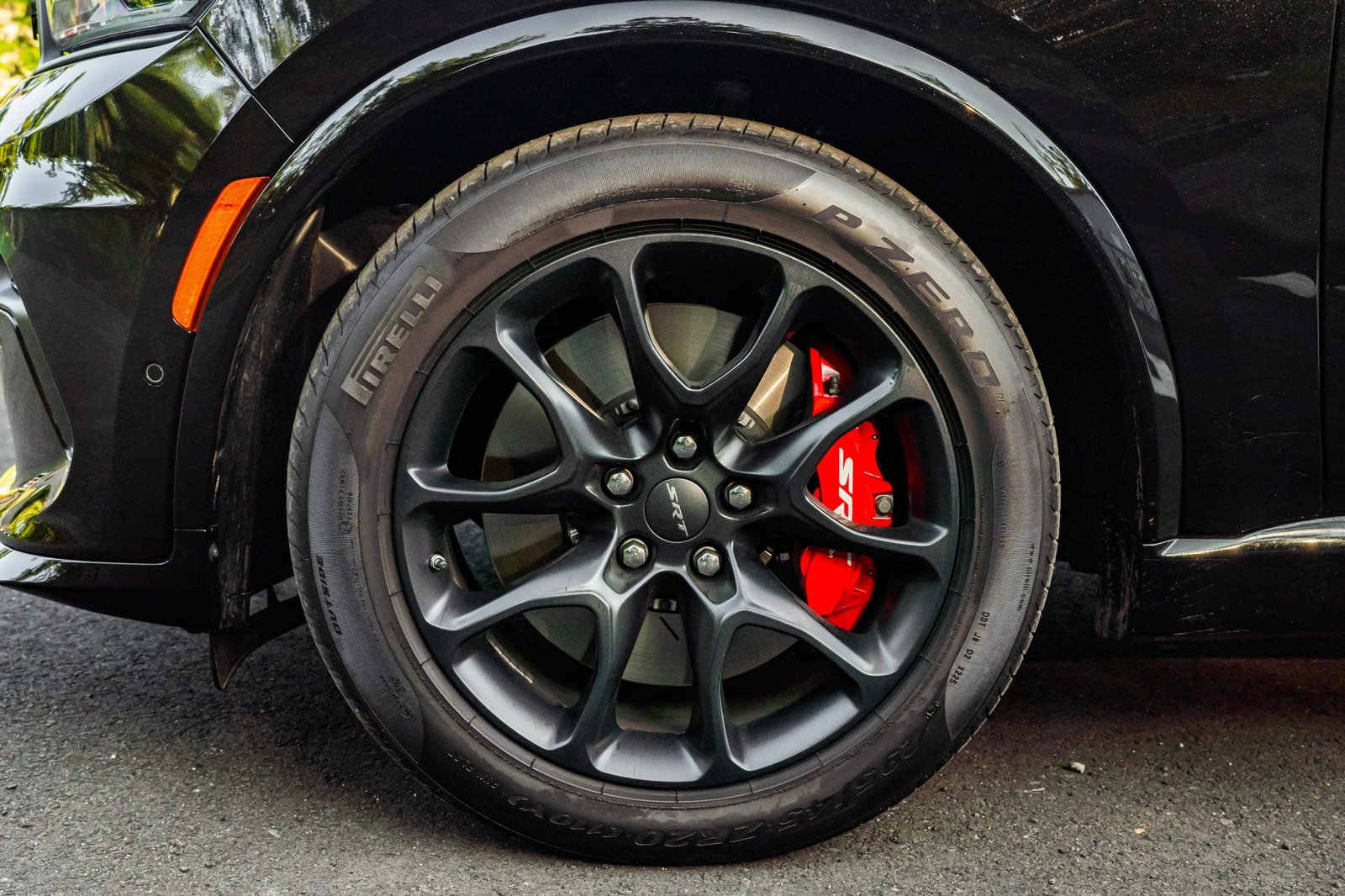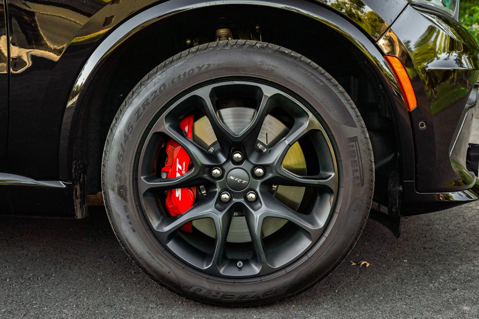 Two-piece front rotors with red SRT-branded Brembo calipers
