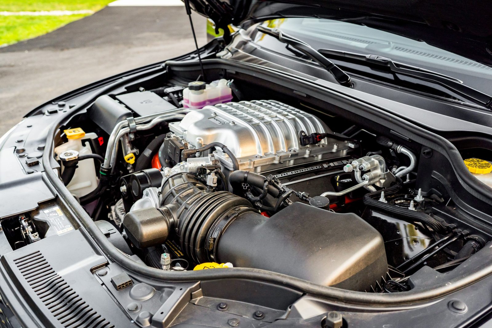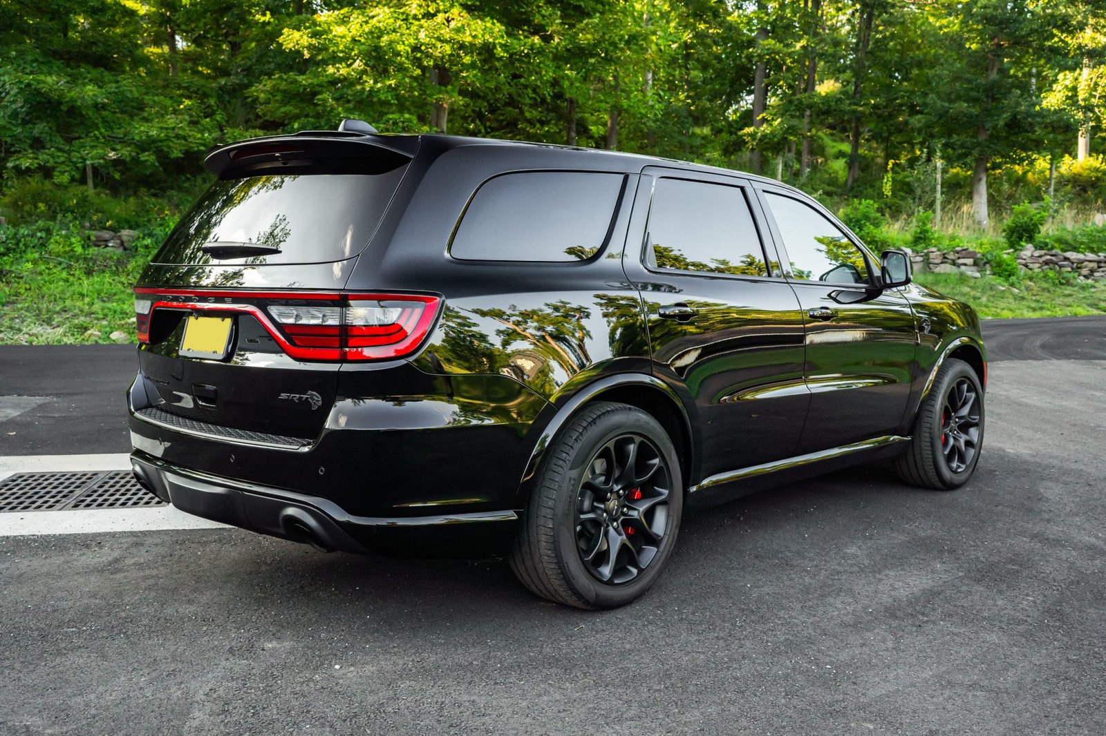 The 2021 Durango SRT Hellcat blends muscle-car power with full-size SUV versatility. Under the hood is a factory-supercharged 6.2-liter Hemi V8 delivering 710 horsepower and 645 lb-ft of torque, routed to all four wheels via an eight-speed automatic transmission and an electronic limited-slip rear differential.