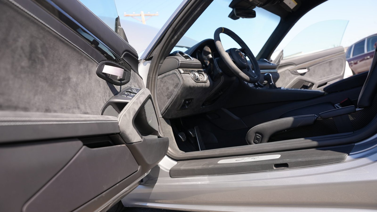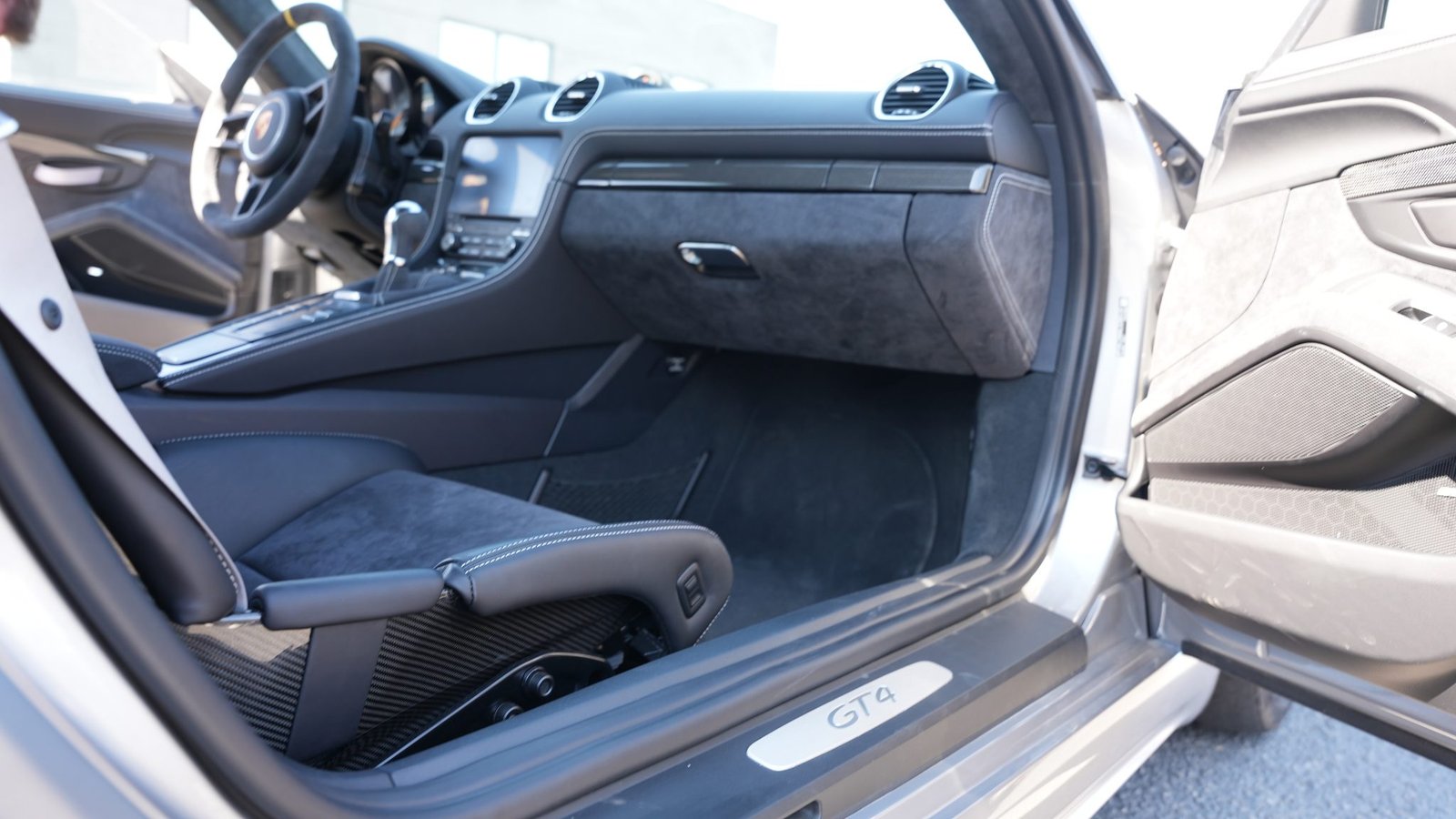 “GT4” embroidered headrests, Silver Grey seatbelts