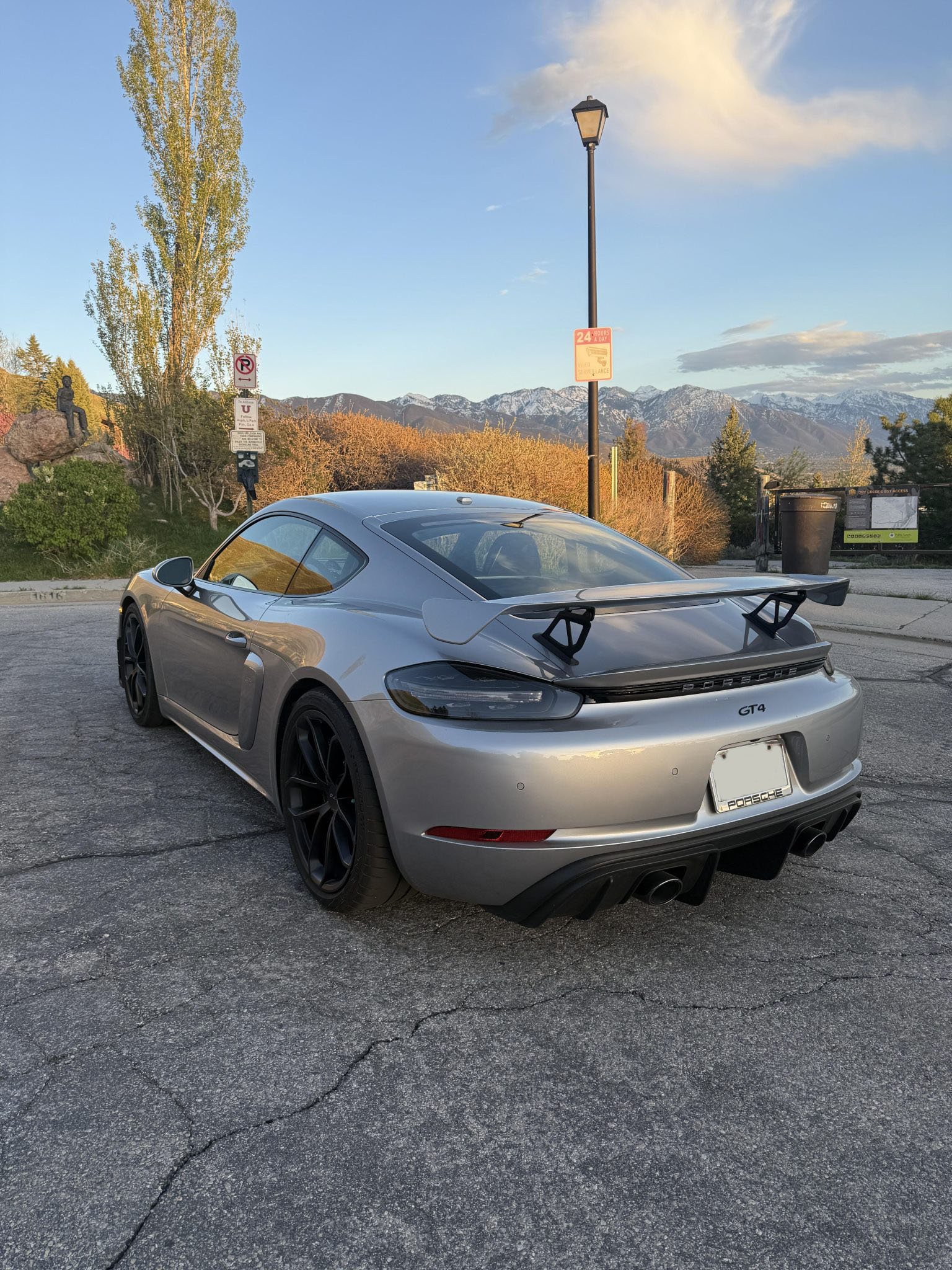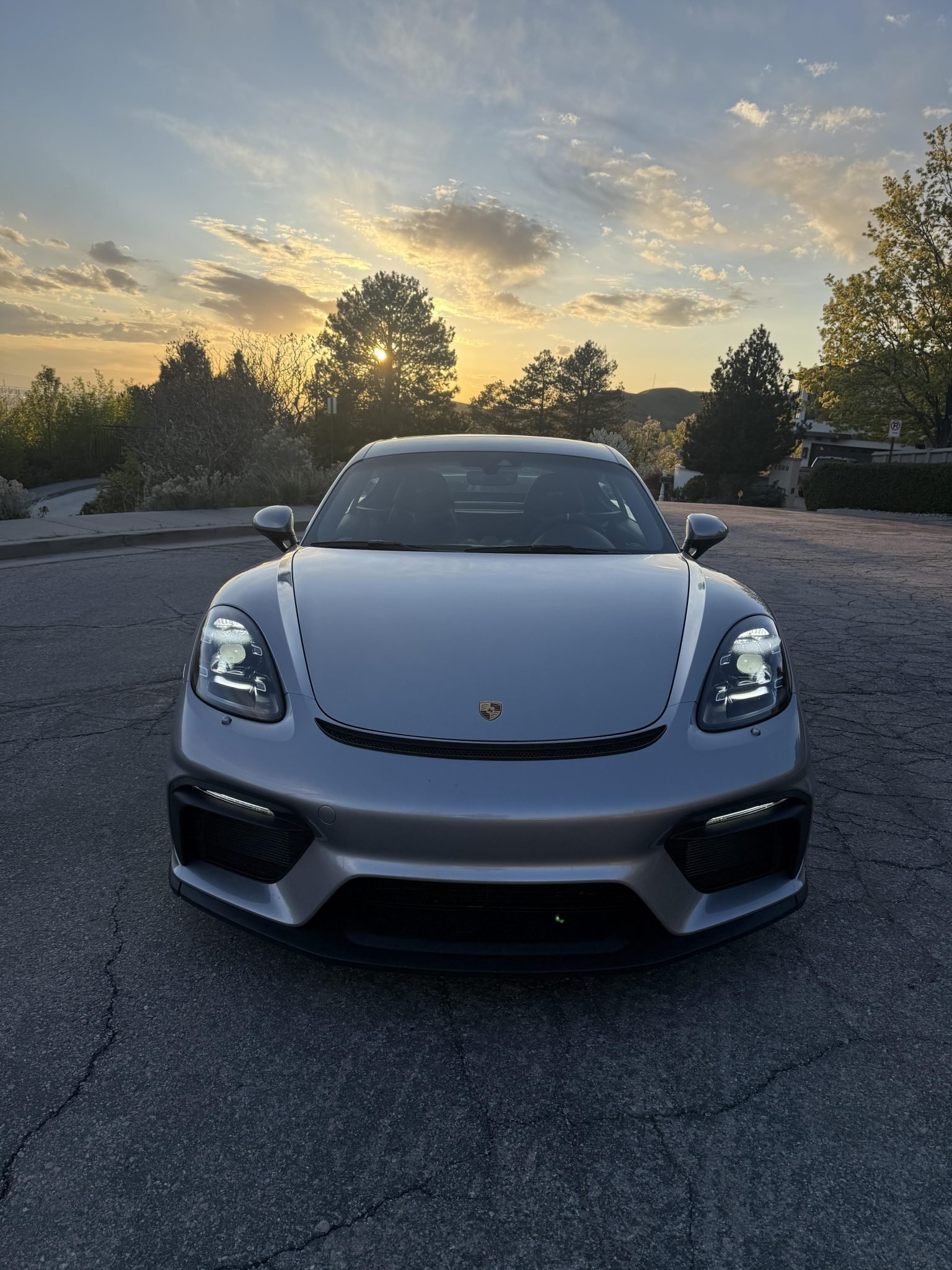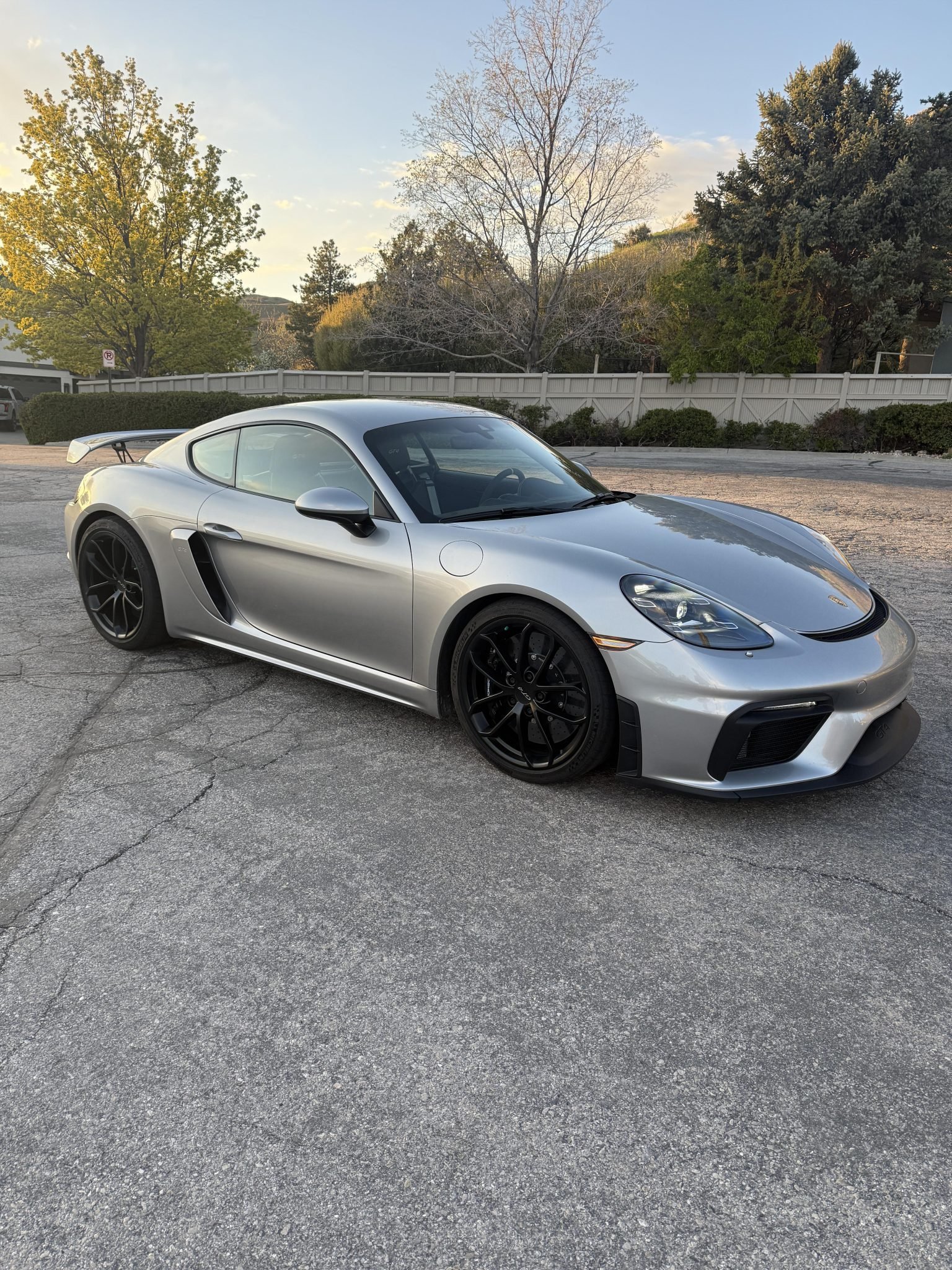 The 2020 Cayman GT4 is a track-focused performance coupe powered by a naturally aspirated 4.0-liter flat-six engine paired with a six-speed manual transmission and a limited-slip differential with Porsche Torque Vectoring (PTV). This example is finished in GT Silver Metallic over a Black leather and Alcantara interior and includes several high-performance factory options.