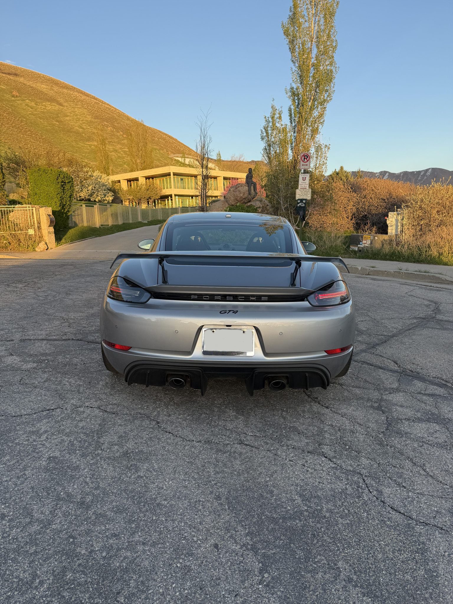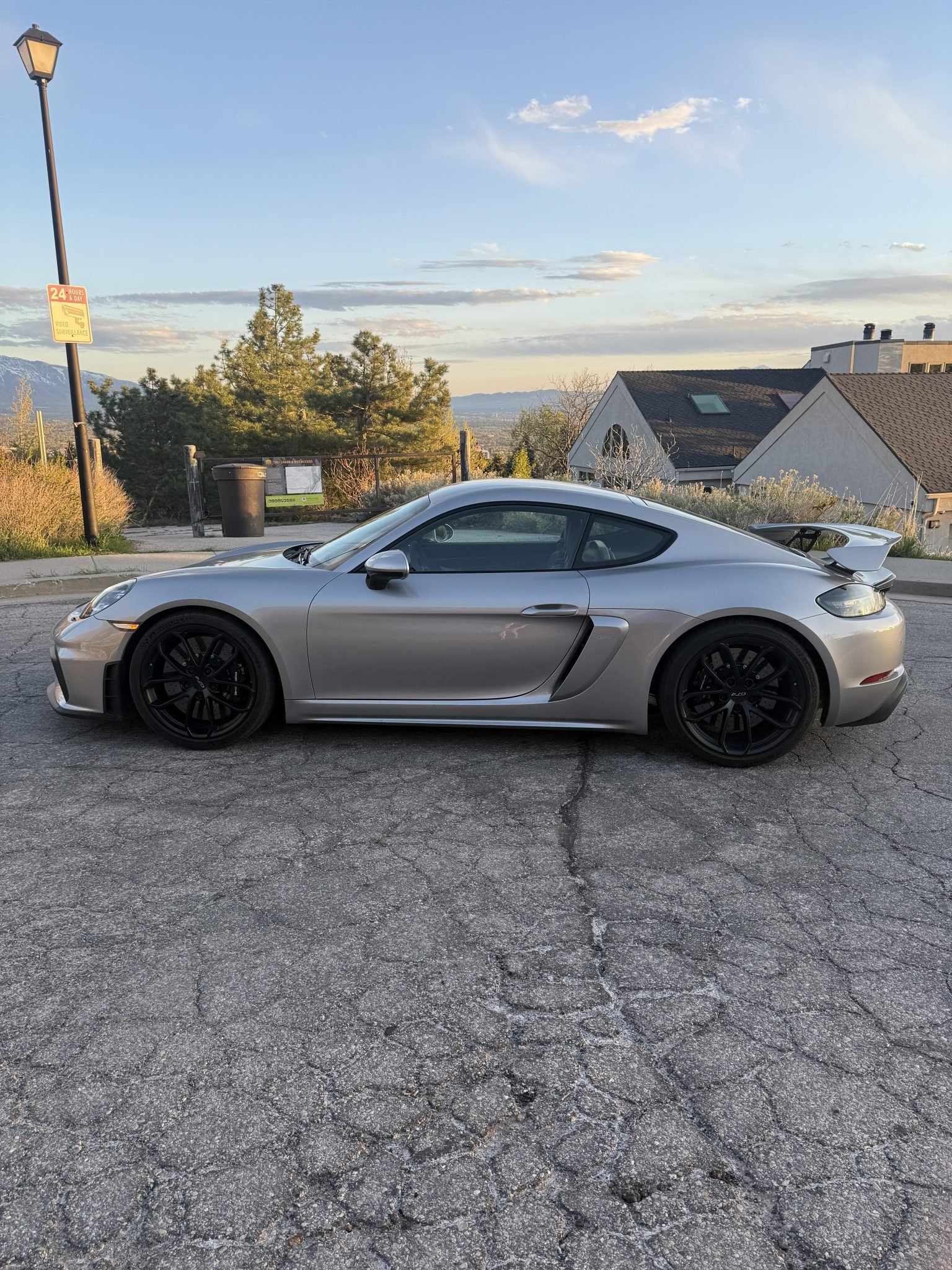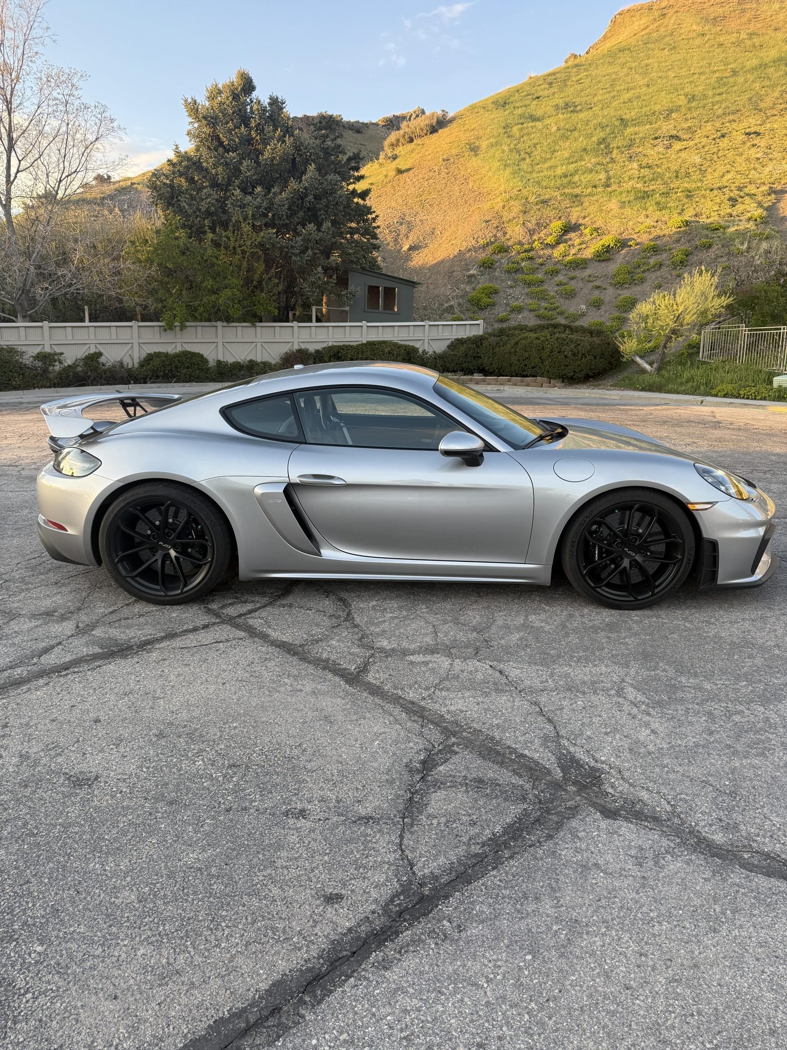The 2020 Cayman GT4 is a track-focused performance coupe powered by a naturally aspirated 4.0-liter flat-six engine paired with a six-speed manual transmission and a limited-slip differential with Porsche Torque Vectoring (PTV). This example is finished in GT Silver Metallic over a Black leather and Alcantara interior and includes several high-performance factory options.