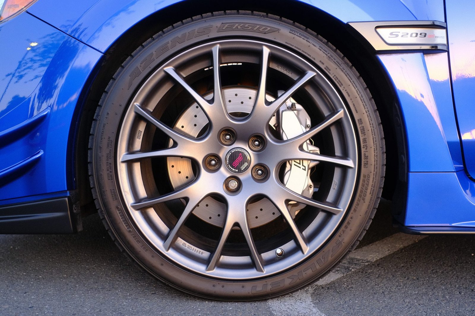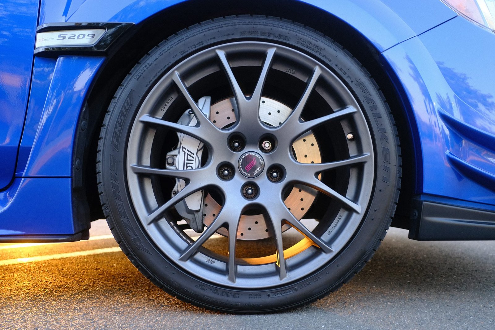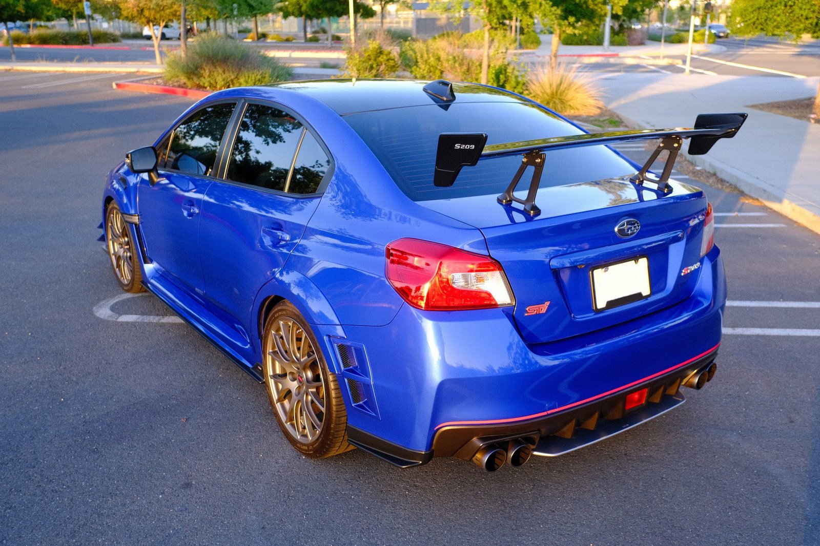 The 2019 Subaru WRX STI S209 is a rare, track-inspired version of the WRX, with only 209 units produced. Finished in World Rally Blue Pearl with red accents, it blends motorsport DNA with aggressive street presence.
