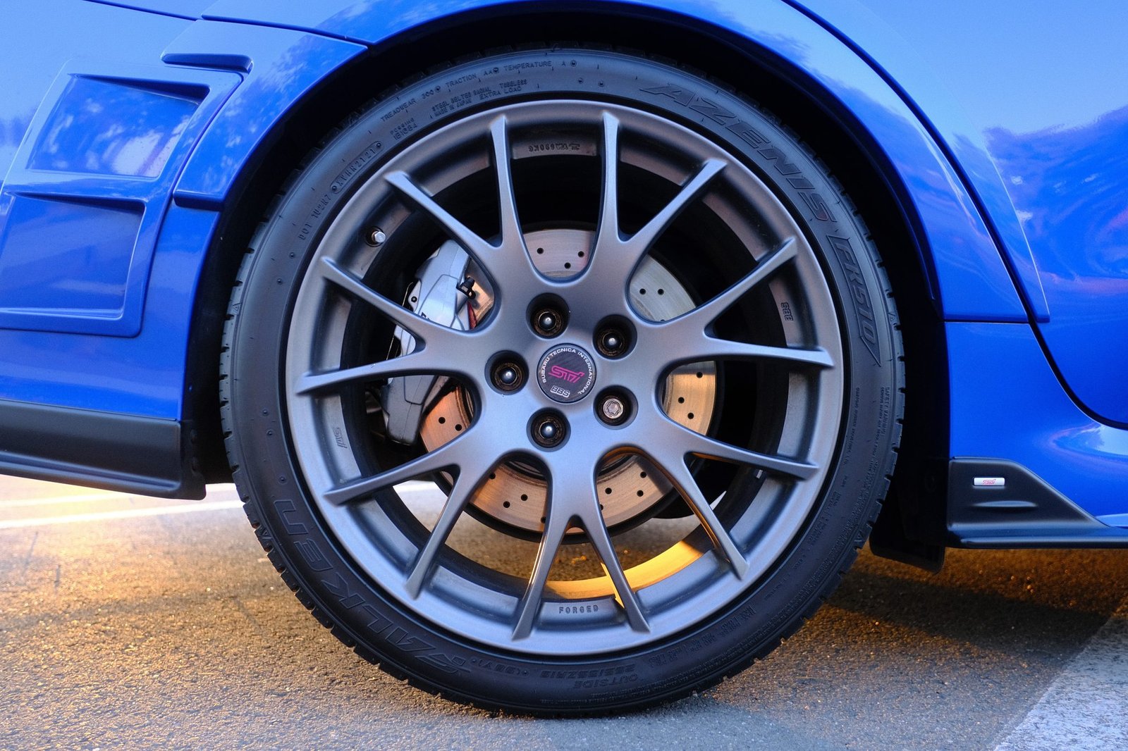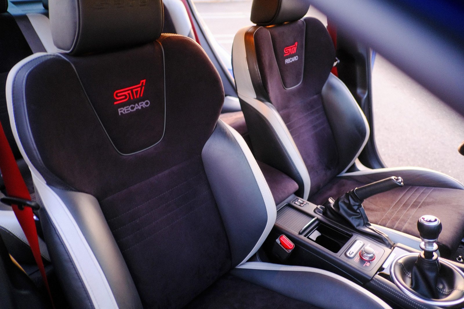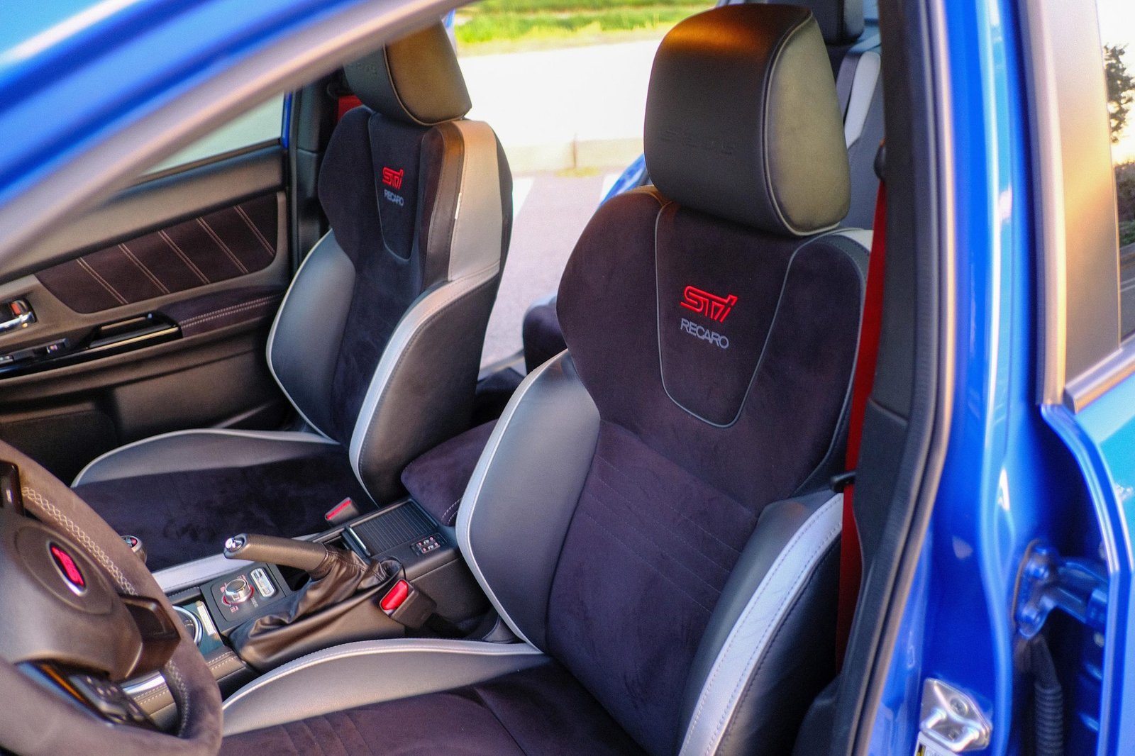 Flat-bottom STI-branded steering wheel